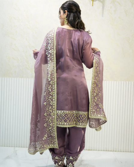 Royal Purple Suit Set with Intricate Work and Embellished Dupatta