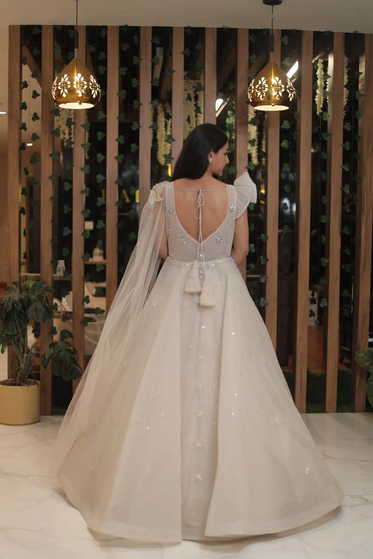 Designer Cream Sequin & Cutdana Detailing Gown