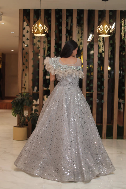 Shimmering – Pearl & Sequin Embroidered Grey Gown