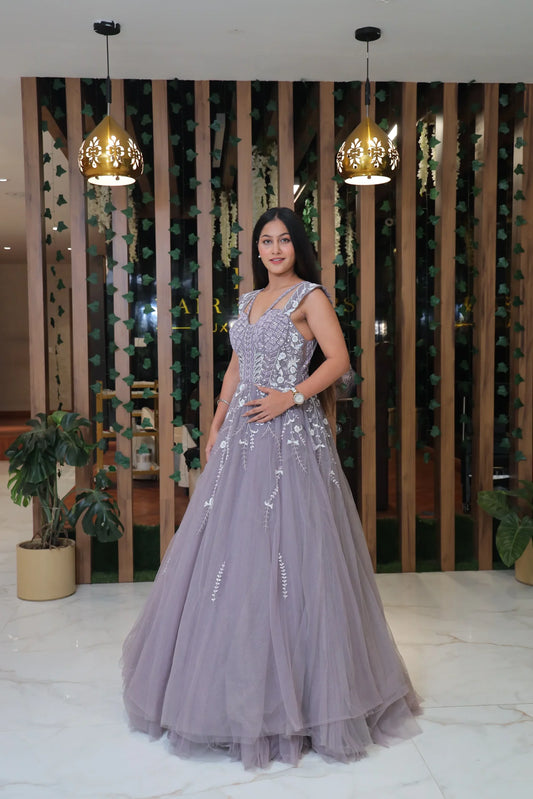 Cool Grey Hand Embroidered Ball Gown