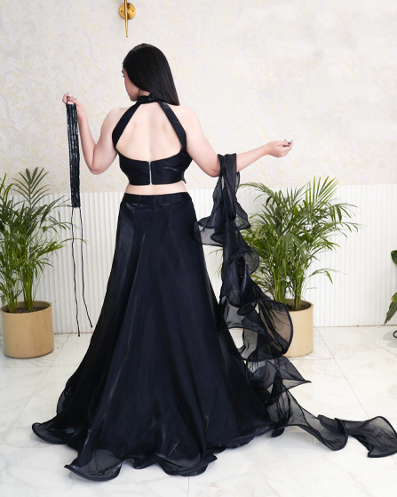Modern Elegance Cocktail Dress with Frilled Dupatta