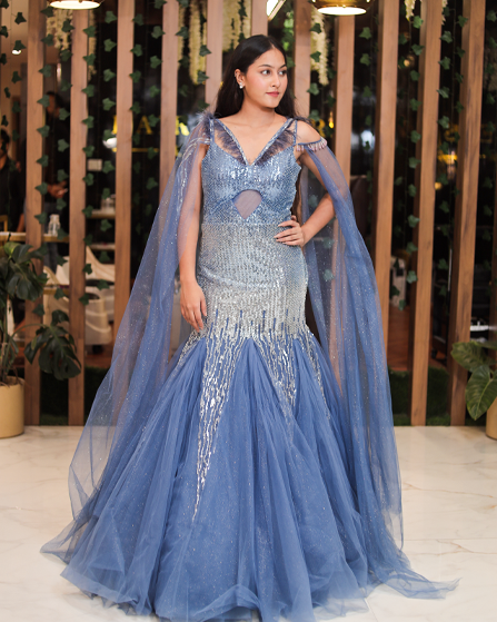 Blue Mermaid Style Indo-Western Gown